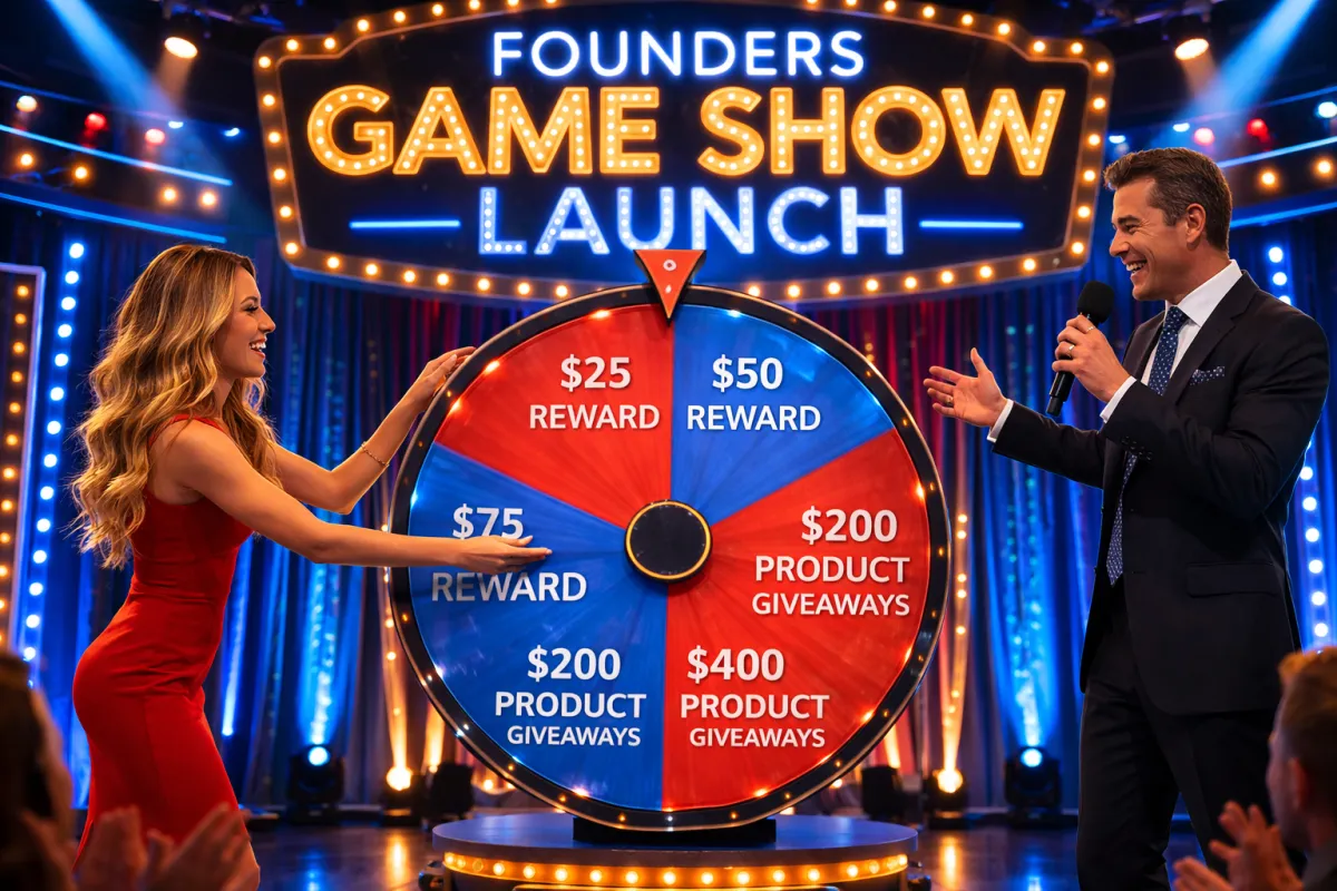 YOU HAVE BEEN INVITED TO OUR FOUNDERS' GAME SHOW LAUNCH.